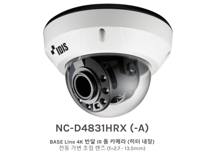 주요사양 | BASE Line 4K 반달 IR 돔 카메라 (히터 내장) |