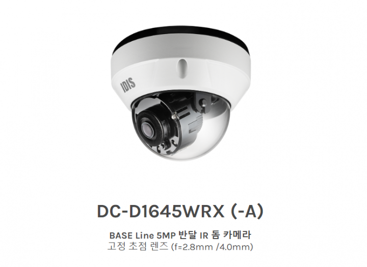 주요사양 | BASE Line 5MP 반달 IR 돔 카메라 |