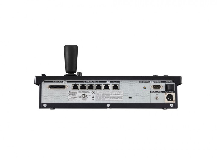 Connectors | DC 12 V IN (XLR 4-pin) LAN (RJ-45) 10BASE-T/100BASE-TX, to control remote cameras SERIAL (RJ-45) RS-422, to control up to 5 remote cameras TALLY/GPI (D-sub 25-pin) REMOTE (D-sub 9-pin) RS-232C, for external control |