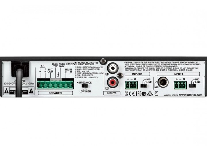 스피커 출력 / 임피던스 | 15.5V/8Ω, 70V/166Ω, 100V/333Ω | |