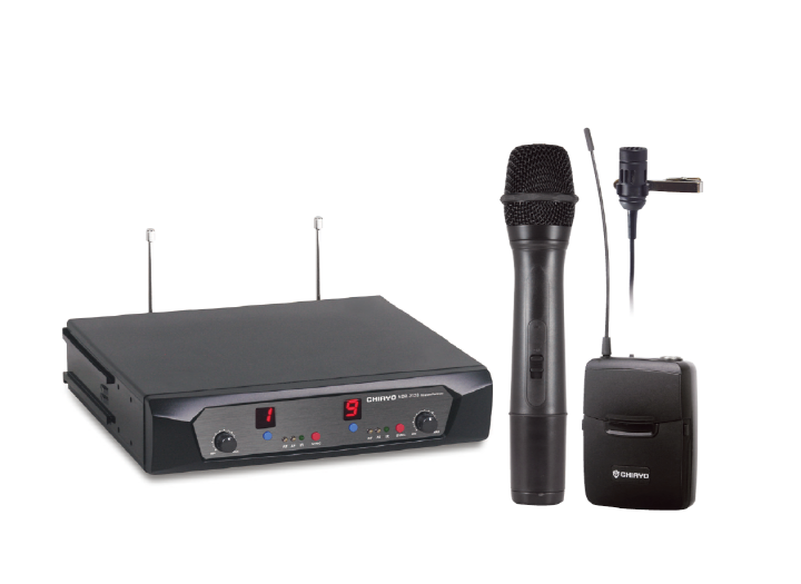 - 시스템 구성 : 2채널수신기+핸드마이크2대, 2채널수신기+벨트 마이크2대, 2채널수신기+핸드마이크1대+벨트마 이크1대