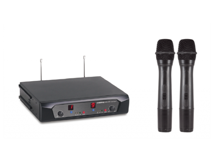 - 시스템 구성 : 2채널수신기+핸드마이크2대, 2채널수신기+벨트 마이크2대, 2채널수신기+핸드마이크1대+벨트마 이크1대