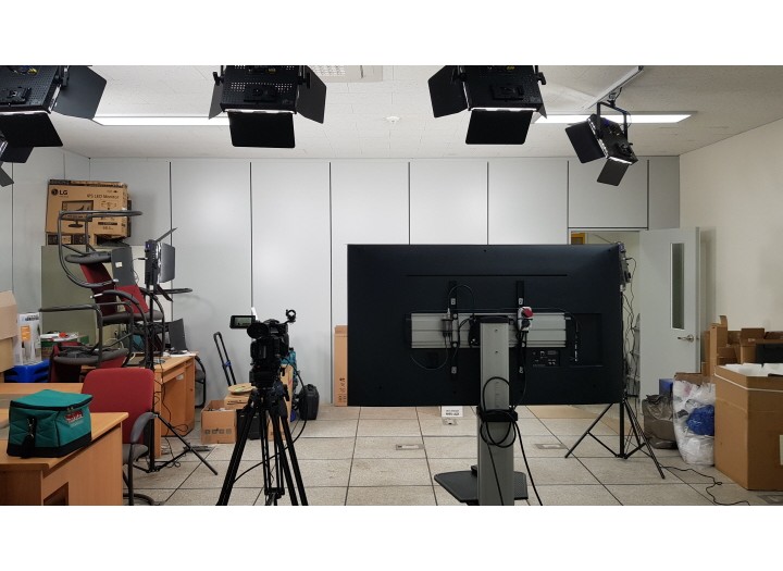 스튜디오에 조명의 각도, 밝기, 색온도 조절이 가능한 이동식 LED 조명을 설치하여 상황에 따른 컨텐츠 제작이 가능하도록 하였고