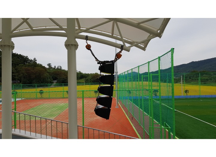 신규로 조성된 다목적 운동장에 옥외용 라인어레이 스피커를 설치하였습니다.