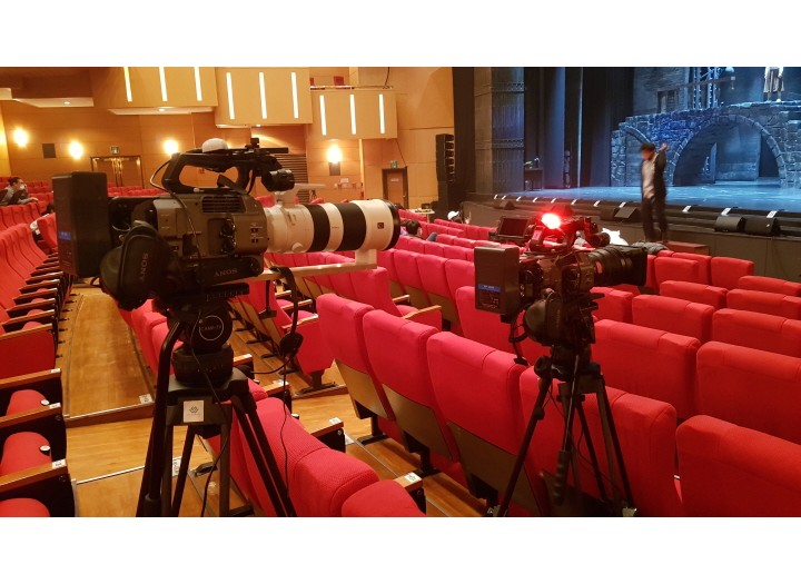 OO아트센터 공연 촬영에 6~8대의 카메라를 사용해 각기 다른 앵글로 촬영을 하고 있습니다.