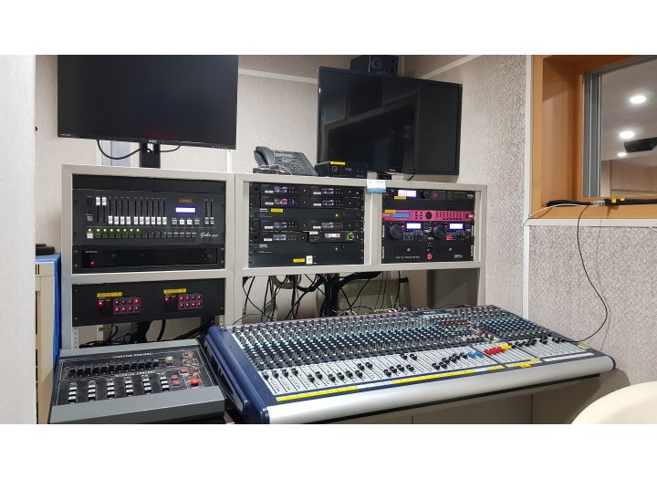 방송실에 DMX-512 조명 컨트롤러를 설치하여 각 행사의 성격에 맞는 밝기 및 색온도 설정이 가능하도록 하였고
