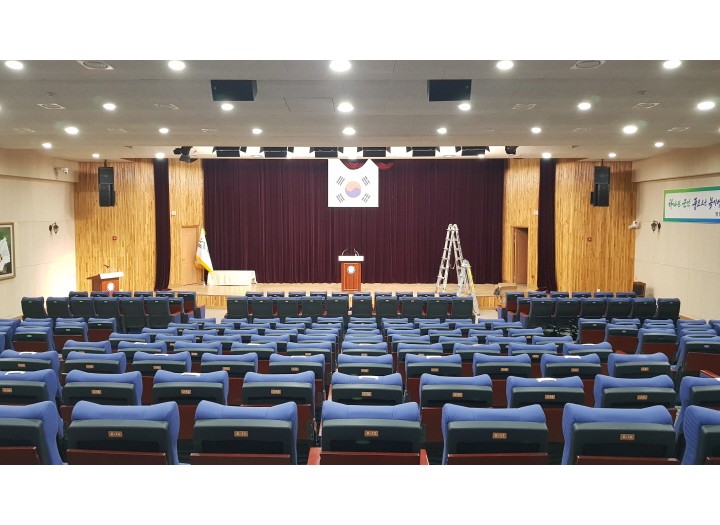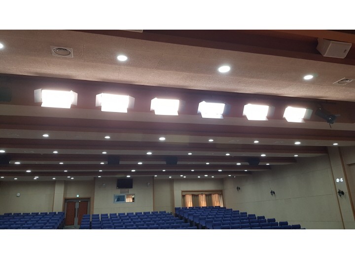 강당의 특수조명 입니다. 램프타입 면조명과 램프타입 스팟조명으로 구성되어 있으나