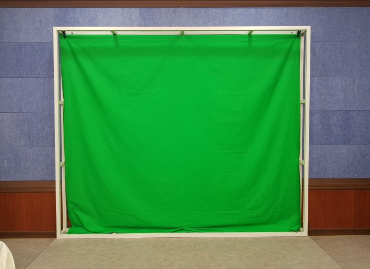 롤브라인드 형태로 제작된 배경막 및 크로마 스크린을