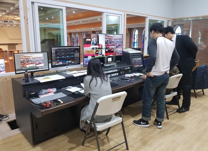 주요장비 | 10CH Live Switcher, PTZ Camera, PTZ Controller, 부감Camera, PGM Monitor, 목사님 모니터, Multiview Monitor, HD VDA, HD Modulator, ProCG 27 문자 자막기 |