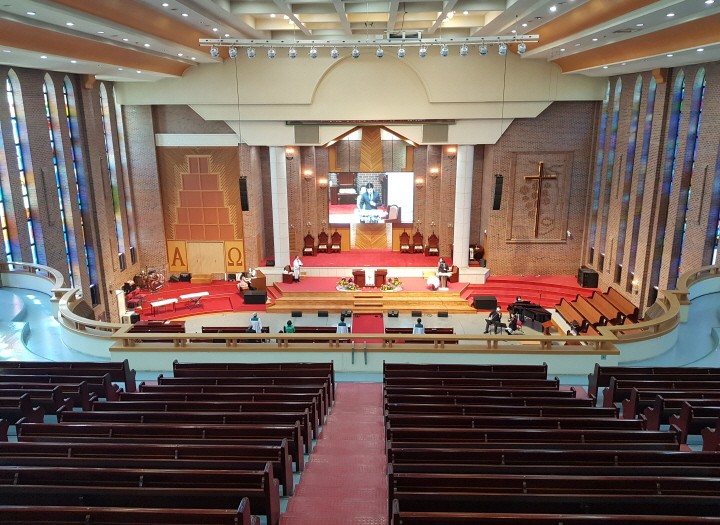 양쪽으로 설치되어 있어 예배시 성도들의 시야가 좌우를 향하는 상황입니다.