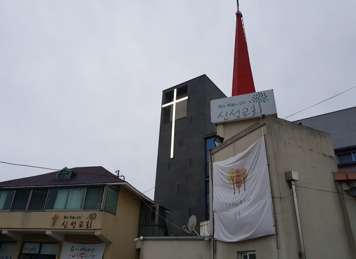 목사님 설교영상 송출 시 스크린과 합께 잡히지 않도록 스크린 위치 선정하였으며