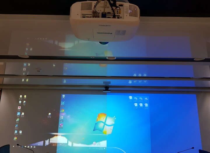 사용량이 많은 중앙 프로젝터의 밝기가 떨어져 램프교체 요구되는 상황입니다.