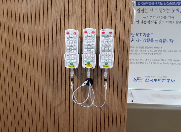 프로젝터 리모컨을 벽면에 거치하여 유선으로 사용중입니다.