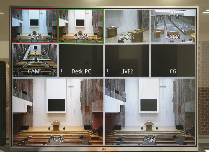 카메라 설치 완료 후 방송실 Multiview 화면입니다.
