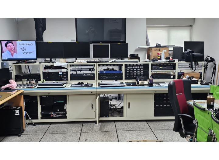 OO군청 통신실입니다. 군청 대회의실 방송실이 대회의실 내부에 있지 않고 별도의 장소에 있습니다.