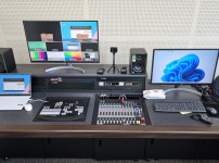 4K Camcorder, Tripod, Zoom Controller, FHD Live Switcher, Audio Mixer, PGM Monitor, Wireless Microphone, Recording PC, Console Desk 외