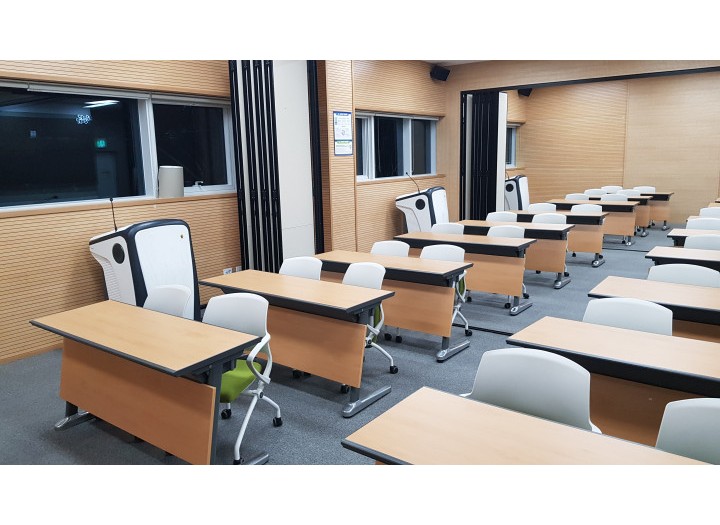 폴딩도어를 열어 통합 평가실로 사용가능하고, 상황에 따라 개별 평가실로 사용 가능한 구조입니다.