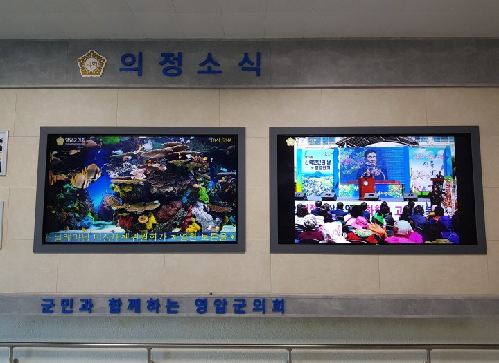 의회 홍보영상 뿐만 아니라 의회 방송 및 TV 시청도 가능하도록 시공 하였습니다.