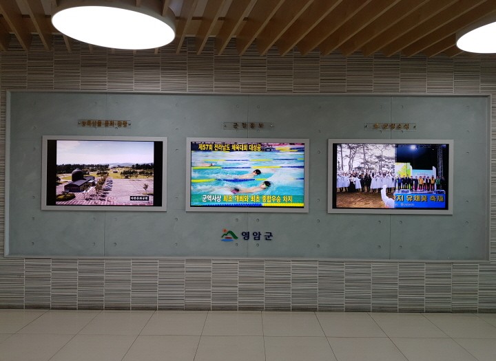군청 방문객이 로비에서도 군정활동 및 문화 관광 내용을 쉽게 접할 수 있도록 설치 하였습니다.