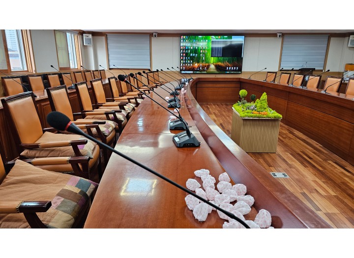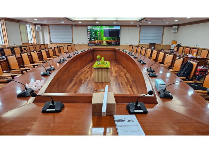 OO군청 회의실 회의 용 마이크 시스템 설치를 마무리 하였습니다.